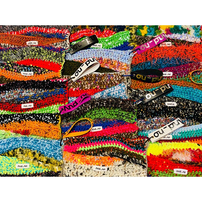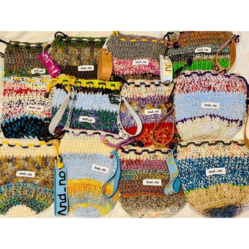 Ms.OOJA自ら毛糸の購入からデザイン、制作、タグつけ、写真撮影、動画制作など、全て1から自身で手掛けた、世界に一つのまるでライブのような手編みの作品達