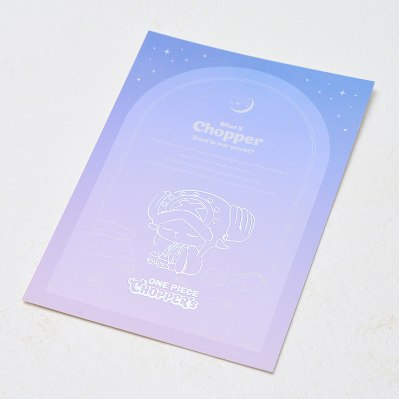 お部屋で遊んでいるうちに、うとうとと眠ってしまったすやすやおやすみチョッパーの姿を描いたデザインです。