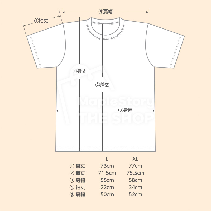 XL:身丈 77cm / 着丈 75.5cm / 身幅 58cm / 袖丈 24cm / 肩幅 52cm