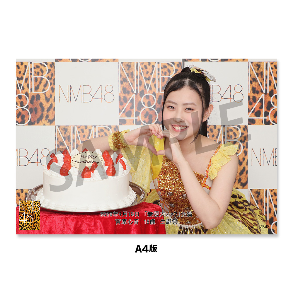 NMB48劇場「撮って出し生写真」2026年4月19日『「無限大ノック」公演 宮原心音生誕祭18:00』A4+台紙付きセット