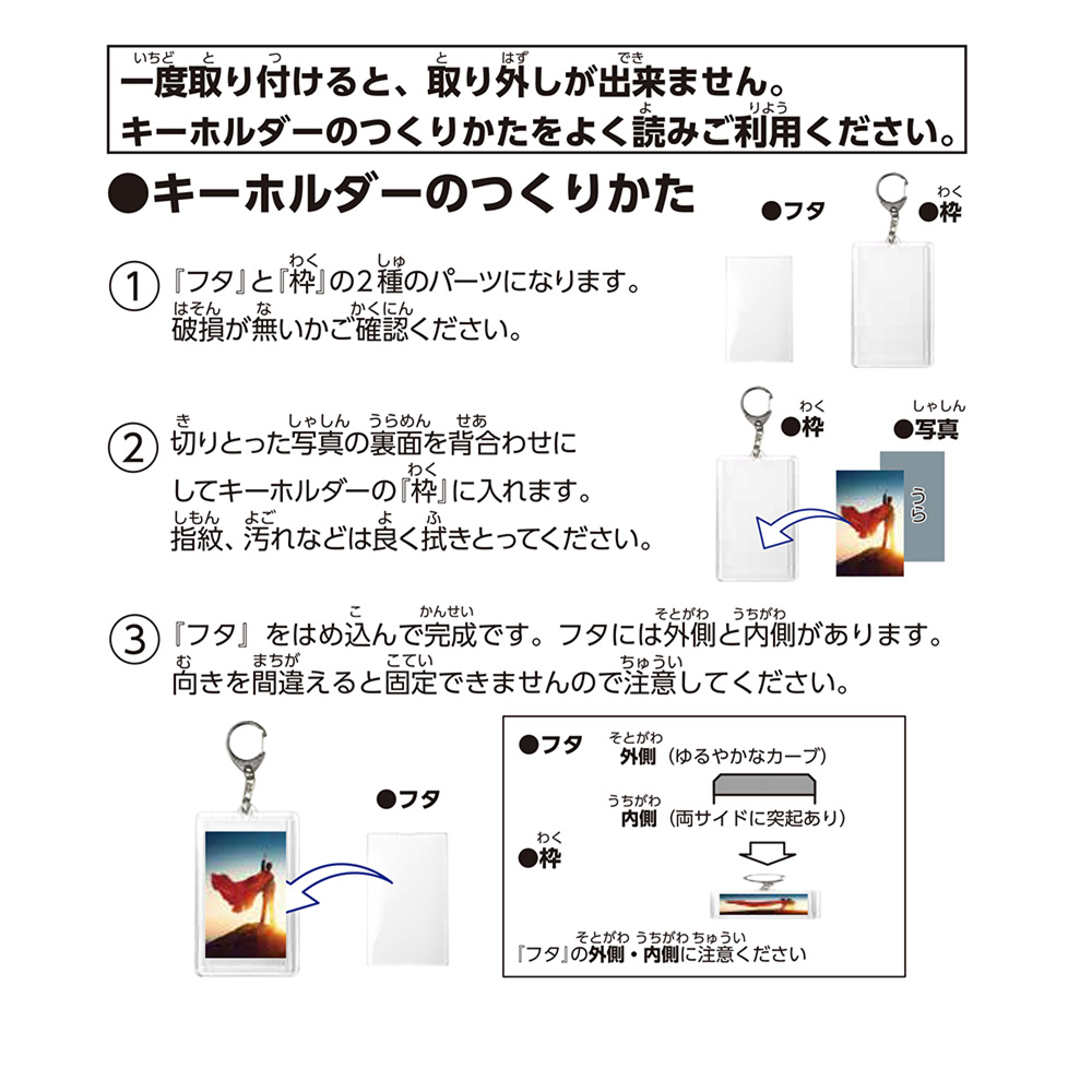 こちらの商品は、お客様ご自身で簡単に作成できるフォトキーホルダーになります。