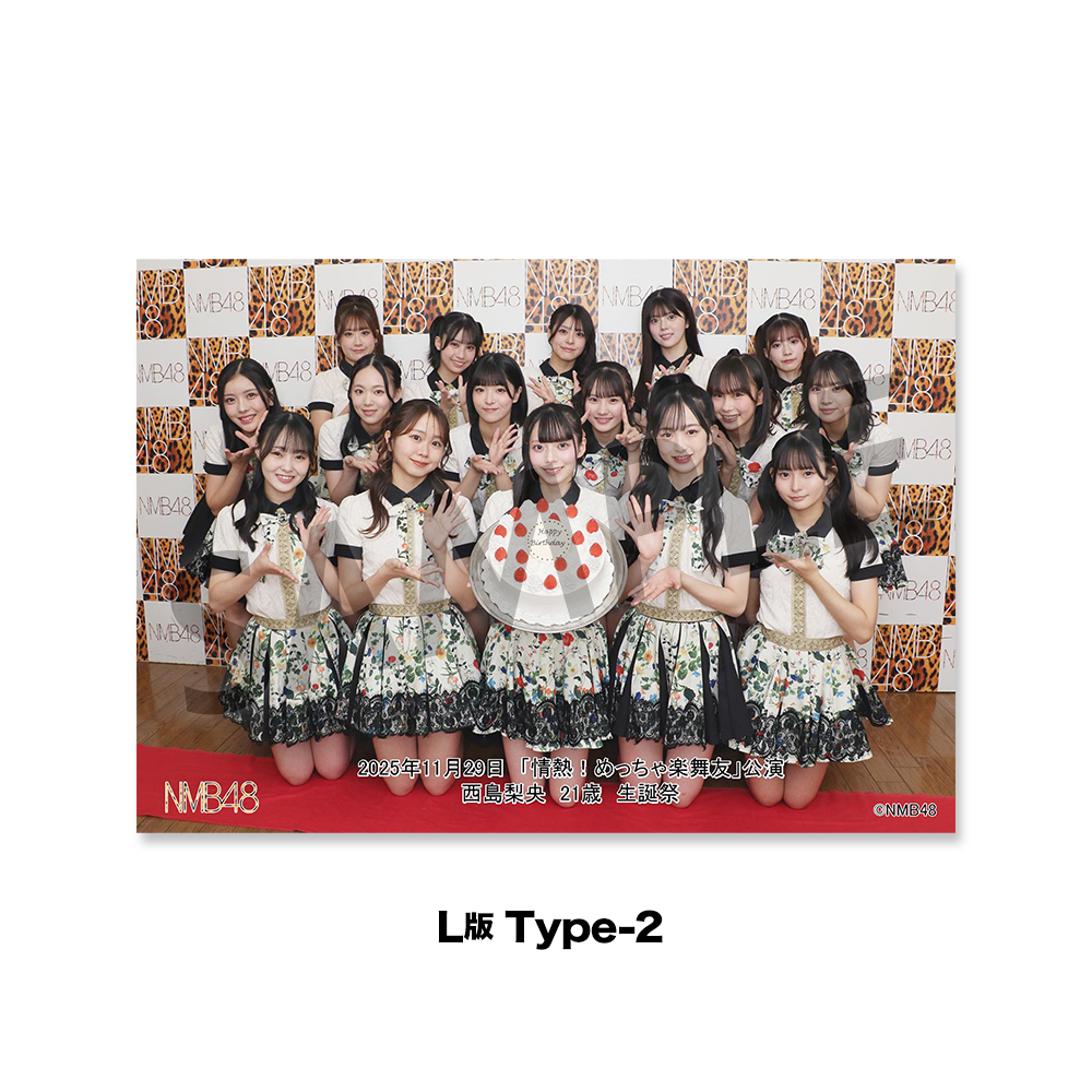 NMB48劇場「撮って出し生写真」2025年11月29日『「情熱!めっちゃ楽舞友」西島梨央生誕祭14:00』2L+L判+クリアファイル付きセット