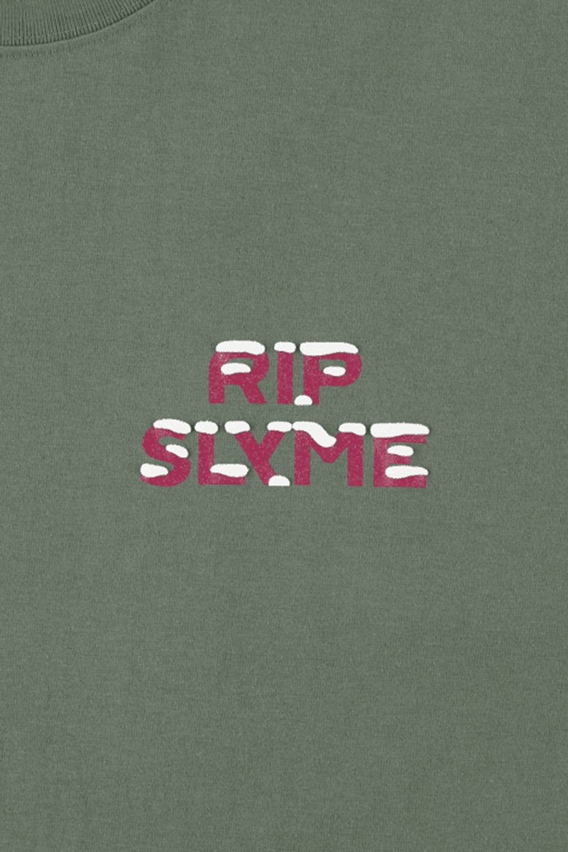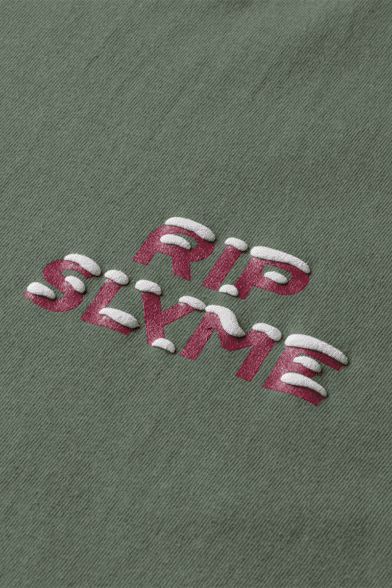 左胸にワンポイントで、雪が積もった「RIP SLYME」ロゴをプリントしたTシャツ。