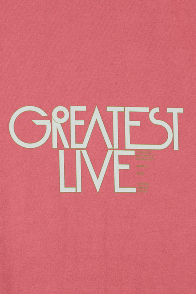 「GREATEST LIVE」ロゴとアリーナ公演の英語説明がデザインされたロングスリーブTシャツ。