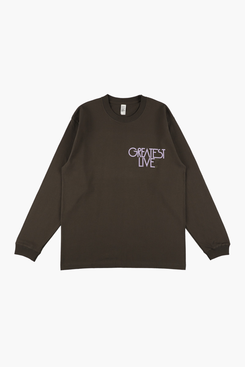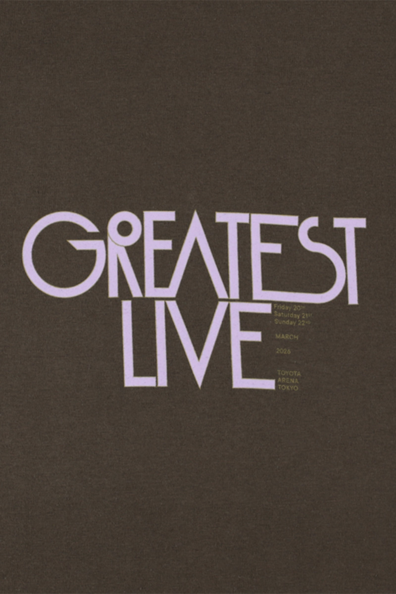 「GREATEST LIVE」ロゴとアリーナ公演の英語説明がデザインされたロングスリーブTシャツ。