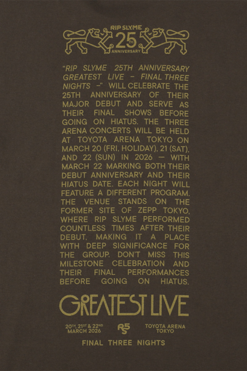 「RIP SLYME 25th Anniversary GREATEST LIVE – Final Three Nights –」グッズ。