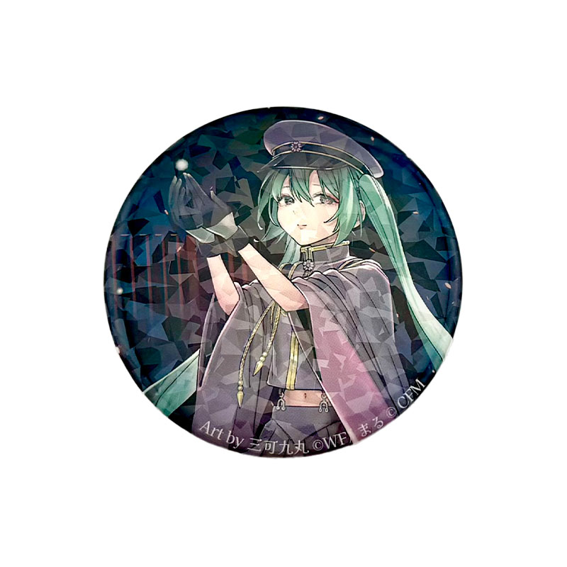 京都・千本桜展のテーマビジュアルをちょっと大きめの缶バッジにしました。ホログラムも入ってとてもきれいです。初音未來、靑音海斗の2種類あります。