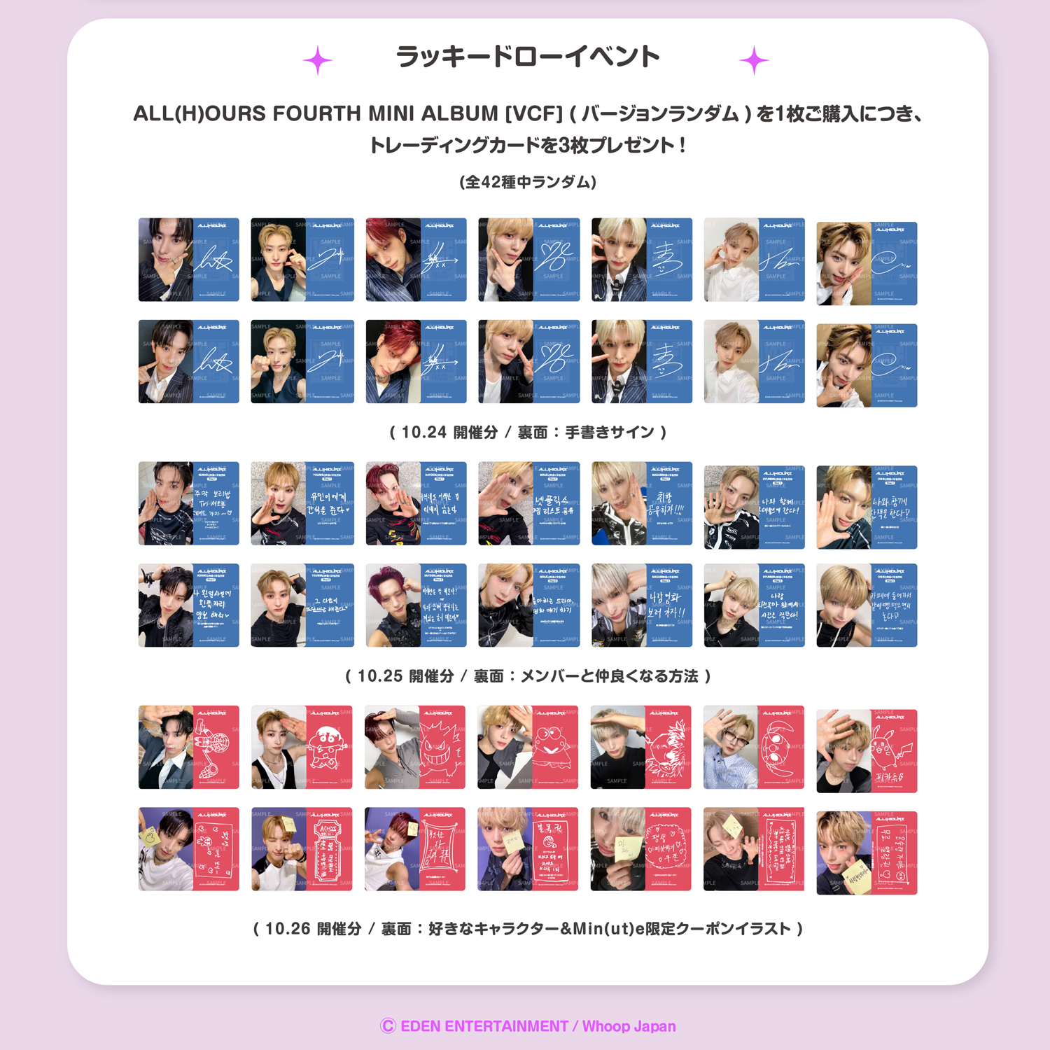 - PHOTO CARD:14種中ランダム2枚 (バージョン別) / 55 × 85mm