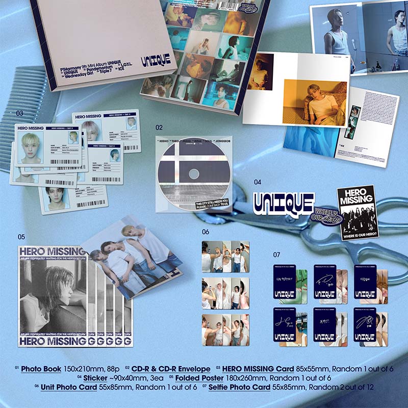 P1Harmony 9th Mini Album [UNIQUE] Photobook A Ver. / Photobook B Ver. / Photobook C Ver. の3種中いずれか1枚をお届けします。
